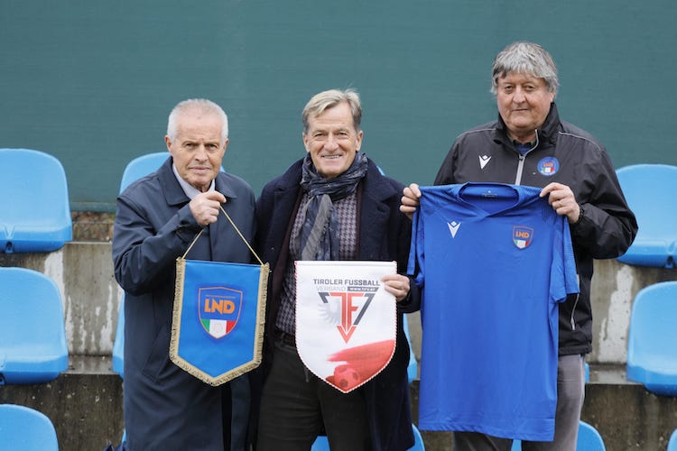 A decidere l’incontro un gol per tempo di Ragghianti (Lucchese) ed Eco (Urbino), il secondo giusto qualche minuto dopo il momentaneo pari di Haller in apertura di ripresa. Per i ragazzi di Mazza, da ieri in raduno a Vipiteno, prime prove d’intesa contro un avversario di buon livello, in questo caso la selezione Under 18 della federazione tirolese che milita nel massimo campionato giovanile nazionale. Status simile quello dei calciatori avversari, in quanto non professionisti, ma riconosciuti come atleti d’élite nel sistema austriaco che attinge spesso dal serbatoio di questa accademia territoriale (Matthäus Taferner, centrocampista del WSG Tirol, il prodotto maggiormente noto in Bundesliga). Prima di dare il via alla partita, spazio a un simbolico scambio di maglia e gagliardetti tra dirigenti in campo: per la LND il consulente del presidente per le rappresentative Ettore Pellizzari e il numero uno del CPA Bolzano Klaus Schuster, dall’altra il presidente della Tiroler Fussballverband Josef Geisler.